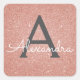 Pink Rose Gold Glitter and Sparkle Monogram Square Sticker