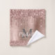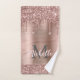 Modern, girly rose gold glitter drips name and monogrammed bath towel. This design features blush pink rose gold glitter sparkle drips on pink brushed metal background with custom personalised monogram initial and first name text template. Perfect feminine gift. . If you need help or matching items, please contact to me. Please note, this design is printed photo effect with no real glitter.