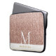 Pink Rose Gold Glitter Modern Monogram Laptop Sleeve