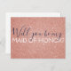 Blush Pink - Rose Gold and Navy Blue Faux Glitter and Sparkle Elegant Will You be my Maid of Honour? Postcard.