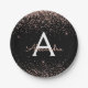 Pink Rose Gold Glitter Sparkle Monogram Birthday Paper Plate