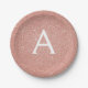 Pink Rose Gold Glitter & Sparkle Monogram Birthday Paper Plate