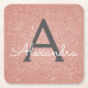 Pink Rose Gold Glitter & Sparkle Monogram Birthday Square Paper Coaster