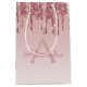 Pink Rose Gold Glitter & Sparkle Monogram Medium Gift Bag