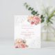 For an elegant and romantic wedding. A white background decorated with pink and rose gold florals, roses and lace. Personalise and add your names and details.