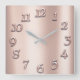 Pink Rose Gold Metallic Arabic Number Blush Girly Square Wall Clock