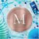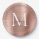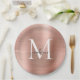 Pink Rose Gold Monogram Script Glam Metallic Steel Paper Plate