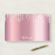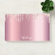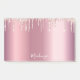 Decorated with rose gold faux glitter drip, paint drip look.  Elegant pink faux metallic background. Template for Your name in white written with a hand lettered style script.
