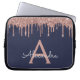 Pink Rose Gold Navy Blue Glitter Sparkle Monogram Laptop Sleeve