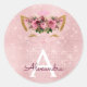Pink Rose Gold Sparkle Kitty Monogram Birthday Classic Round Sticker