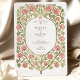 Celebrate your love story with this utterly romantic wedding invitation, inspired by the graceful elegance of the Art Nouveau period. This design features a beautiful, intricate frame of intertwining vines, rendered in a soft, earthy green. Nestled within the vines are stylised pink watercolor roses and charming, heart-shaped leaves in a muted sage green, creating a whimsical garden trellis effect. A single pink heart at the top adds a sweet, symbolic touch. The delicate watercolor artistry gives this invitation a soft, hand-painted feel. Inside this lovely floral border, your wedding details are presented in a classic and refined typography, which is fully customisable. It's the perfect choice for a fairytale, garden, or romantic vintage-themed wedding.