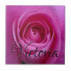 Pink Rose in Bloom with Your Name Ceramic Tile