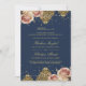 Pink Rose Islamic Motif Navy Blue Muslim Wedding Invitation