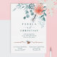 Winter green leaves, blush rose and pinecone wedding invitations are easy to personalise. Watercolor floral artwork is versatile for rust, dusty pink, terracotta, and sage green wedding colour palettes. Beautiful eucalyptus plant design is perfect for your winter wedding invitations.