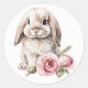 Pink rose Lop Eared Bunny Rabbit Classic Round Sticker