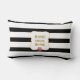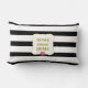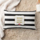 Pink Rose on Black and White Striped Lumbar Cushion