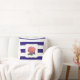 Pink Rose on Navy Blue and White Striped Cushion