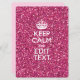 Your humourous personalised Keep Calm saying on a fine custom pink style decor. A personalised Keep Calm style saying. Humourous or whimsical try on your creative words on two editable lines of text. Remember to use CAPITAL letters for best results.