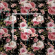 Glorious profusion of pink and white roses and posies and hunter green foliage on black background. Seamless repeating pattern can be scaled up or down.