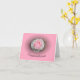 A greeting card with a pink rose showing through a pink blurred vignette. The text reads "Congratulations". The text is customisable and can be changed by the buyer. This card would be suitable for several happy occasions, including the arrival of a new baby girl.