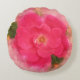 This round, blush and hot pink rose throw pillow is an artistic watercolor edit of a close up photo of this beautiful garden flower. Tiny "paint spatters" of white against the soft petals and green leaves complete the effect that adds a little whimsy and makes this gift truly one-of-a-kind.