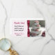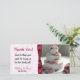 Lovely white tiered wedding cake with pink roses and matching bouquet accented with satin bow. Customise these wedding thank you photocards to show your appreciation for their gift. You can keep the lovely image displayed or replace it with your own. Customise all the text and you have a unique and lovely way to show your appreciation.