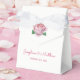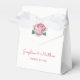 These wedding favour boxes feature pink roses. The front and back of the box have roses, bride and groom names and wedding date. These wedding favour boxes are part of the Pink Rose Wedding Collection which includes a full range of matching wedding stationery such as wedding invitations, reply cards, information cards, address labels, stickers, postage stamps, envelopes, favour stickers, wishing well cards, programs, menus, bridal gifts and much more. Visit the collection page in our store to see the full range range of matching products that you can personalise for your wedding.