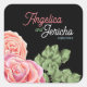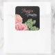 Simple pink rose square stickers feature pink rose flowers and green leaves made with marker pen. A pink rose atmosphere marker colour made wedding invitation.
