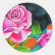 From an original fine art watercolour painting by artist Sacha Grossel, this bright and vibrant painting depicts two bright pink roses in bloom against an orange and dark textured background. Contemporary and modern in style, this design is colourful and uplifting.
