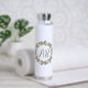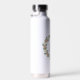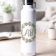 This elegant white metal water bottle has a hand drawn floral wreath of pink roses with green and cream leaves. Centered inside the wreath is your choice of initials, making it a perfect gift or everyday accessory.