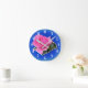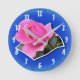 Pretty pink rosebud bursting from the photo in an out of bounds technique flower art wall clock. Click on Customize to add text. Please visit my store at Smilin' Eyes Treasures to see more flower, animal, nature, and digital art design cards and gifts for home and office.