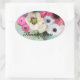 PINK ROSES AND ANEMONE FLOWERS Thank you Oval Sticker