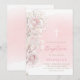 pink roses and baby's breath | Baptism baby girl Invitation