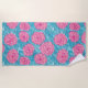 Pink Roses and Blue Palm Leaves Beach Towel