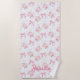 This beach towel has Pink Roses and Bows on a white backgourn and can be personalised with a name by clicking "personalise this template."