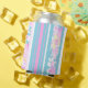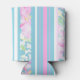 A pretty Can Cooler, with a pattern of pink, turquoise and white Deckchair stripes and Pink Roses. Part of the Posh & Painterly 'Summer Days' collection, this pattern can be adjusted to fit any Cooler.