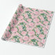 Pink Roses and Monstera Leaves Floral Wrapping Paper