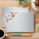 A gorgeous silver and pink floral envelope with a rose theme. There is a small pink rose bouquet on the front of the envelope in the top left corner, and a larger rose bouquet on the back. Inside is a large pattern of the same pink rose bouquet. The outside of the envelope is also covered in a lush, silver metallic image.