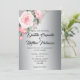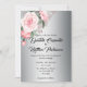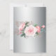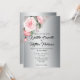 A gorgeous pink floral and silver wedding invite, featuring a bouquet of beautiful pink roses in the top left hand corner, on a metallic silver base. All details can be easily personalised to suit, by clicking on the Personalise this template link above. The reverse of the invitation has the same silver background, with the pink rose bouquet in the middle.