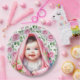 Pink Roses and Smiling Baby Girl's Baby Shower Paper Plate