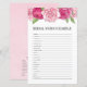 Pink Roses Bridal Shower Word Scramble Game Card