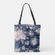 Let the pink rose flowers bloom on a dark blue abstract background.