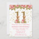 Pink Roses Floral 11th birthday party invitation for a 11 year old girl with modern script writing and gold glitter.