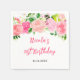 This beautiful and elegant napkin features watercolor pink roses and foliage. The text combines handwritten script and serif fonts for a stylish and modern look. This is perfect for a spring or summer rustic birthday.