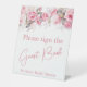 Pink roses floral bridal shower guest book table sign.
