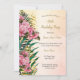 Pink Roses Floral Gold Palms Birthday Party Invitation