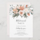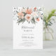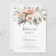 Elegant rustic floral retirement party invitation in earthy pink and white hues with green foliage. Script name and serif text type.