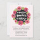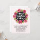 This pretty Quinceañera party invitation features pink watercolor roses, a pretty brush script calligraphy that reads "Mis quince años," a chalkboard frame, and a light pink and white striped background. Additional text or photos can be added to the back of the invite.