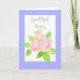 A 'Get Well' card with the greeting in Welsh and a posy of pink Albertine roses from a watercolour painting by Judy Adamson.