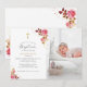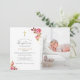 Pink Roses Gold Cross Baby Toddler Photo Baptism Invitation